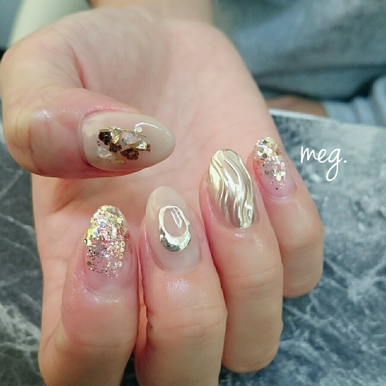 Aki ネイル ネイルデザイン アシンメトリーネイル うねうねネイル ミラーネイル ゴールドミラー マットネイル Facebook